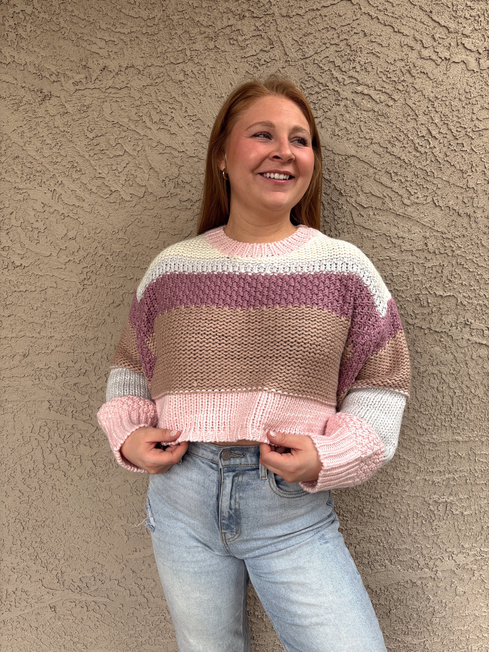 Color Block Knit Cropped Sweater