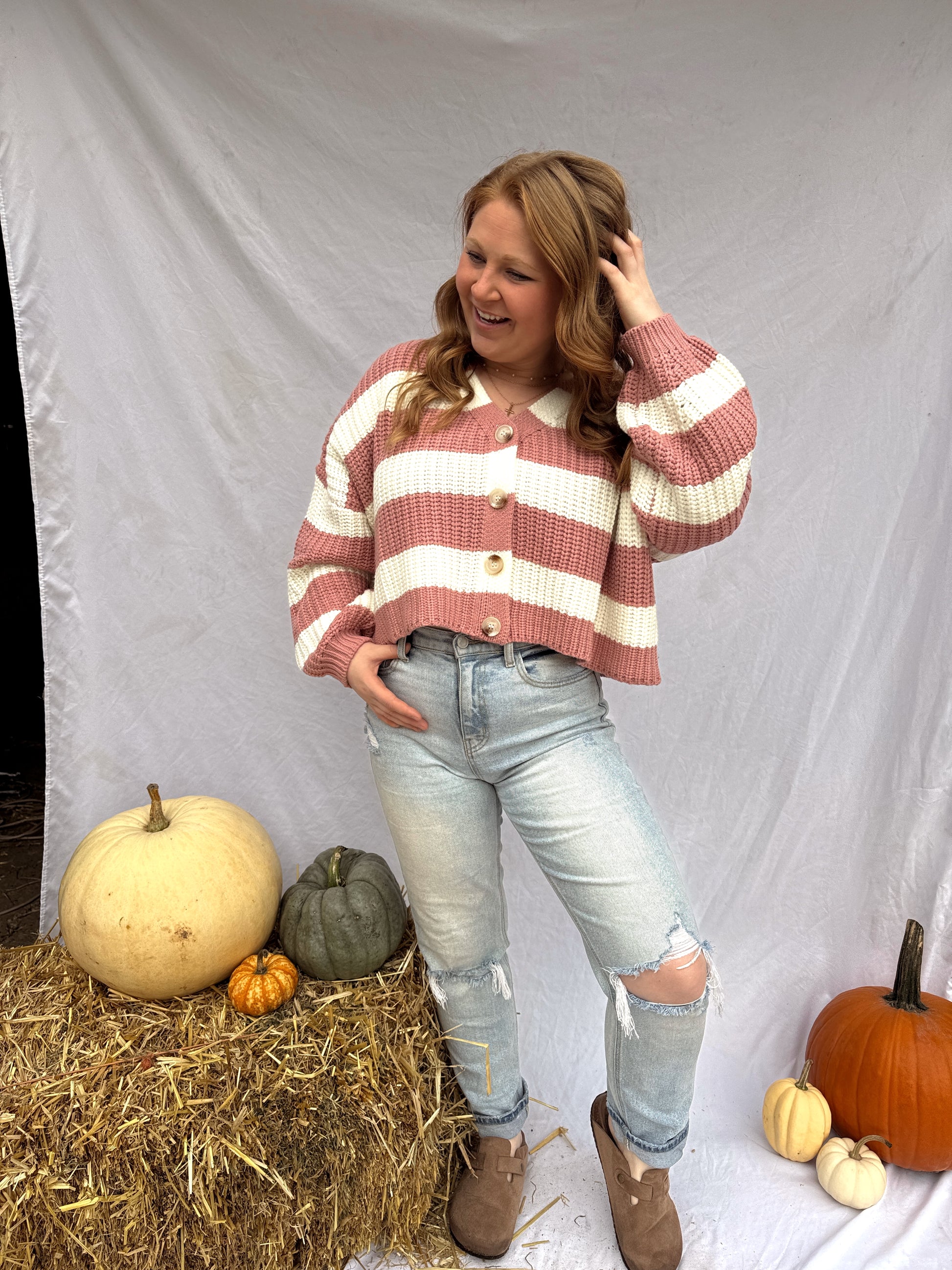 Mauve Striped Cardigan
