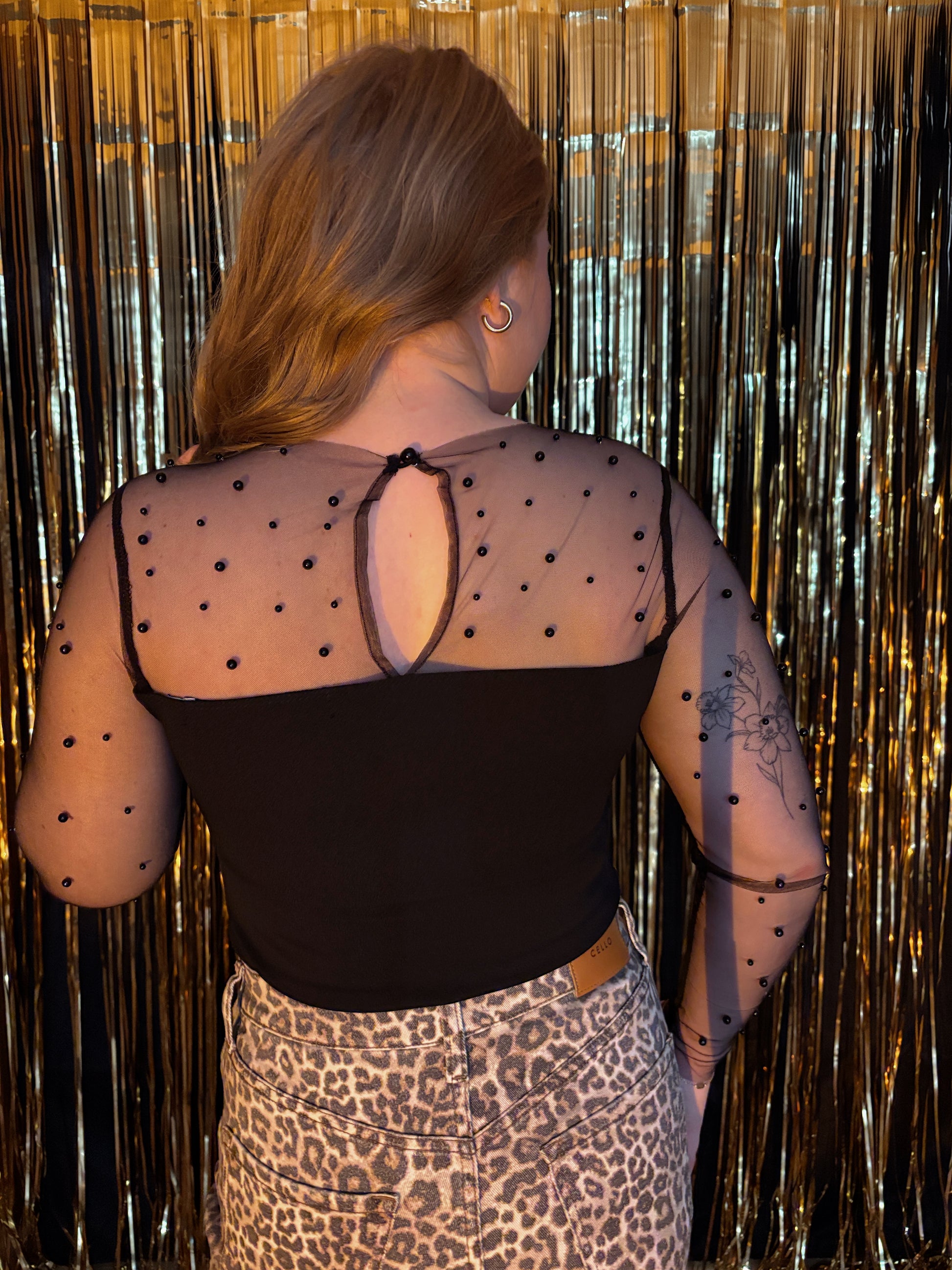 Pearl Dreams Mesh Top - Black